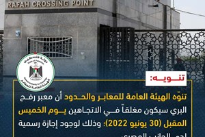 المعابر: إغلاق معبر رفح في الاتجاهين الخميس 30 يونيو